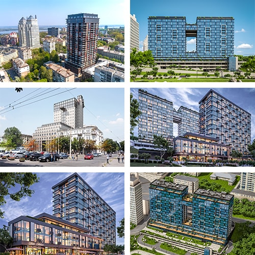 Жилые комплексы расположены в уютных районах Днепра – в шаговой доступности от центра: совсем недалеко находятся театры, парки, остановка общественного транспорта, школы, детские сады, больницы, супермаркеты и другая полезная инфраструктура.