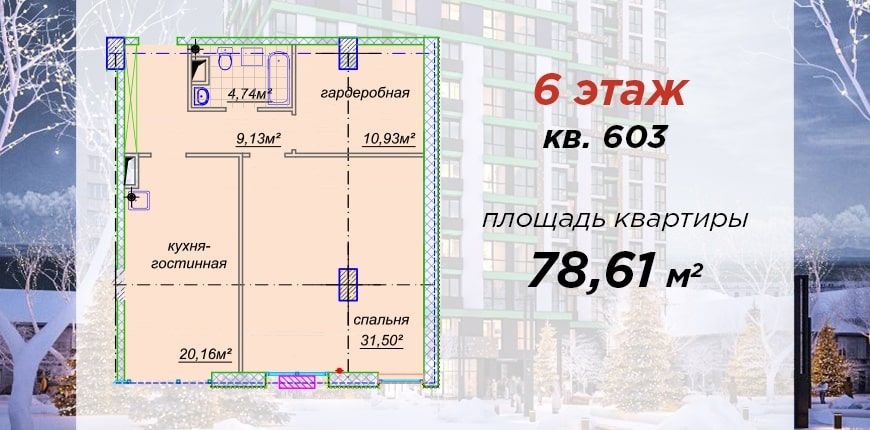 кв.603 – 78,61м2 (в подарок 3775 у.е);