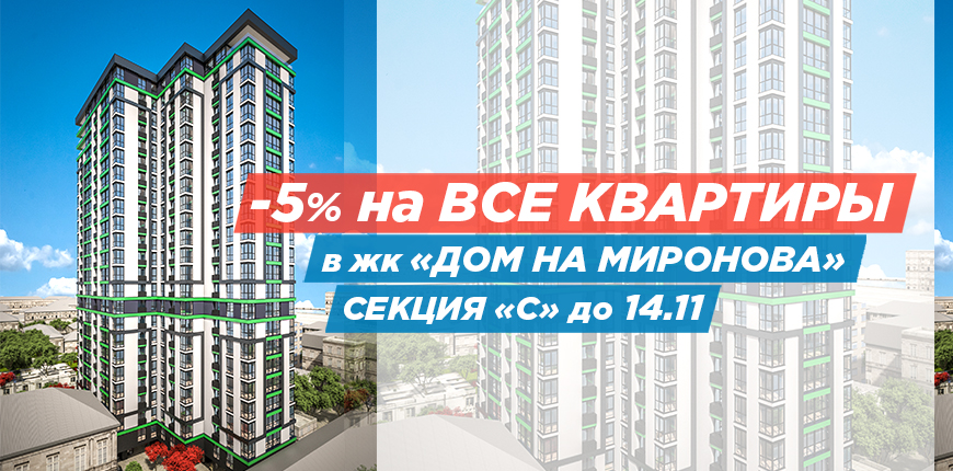 Скидка -5% на все квартиры в ЖК «Дом на Миронова» секция «С».